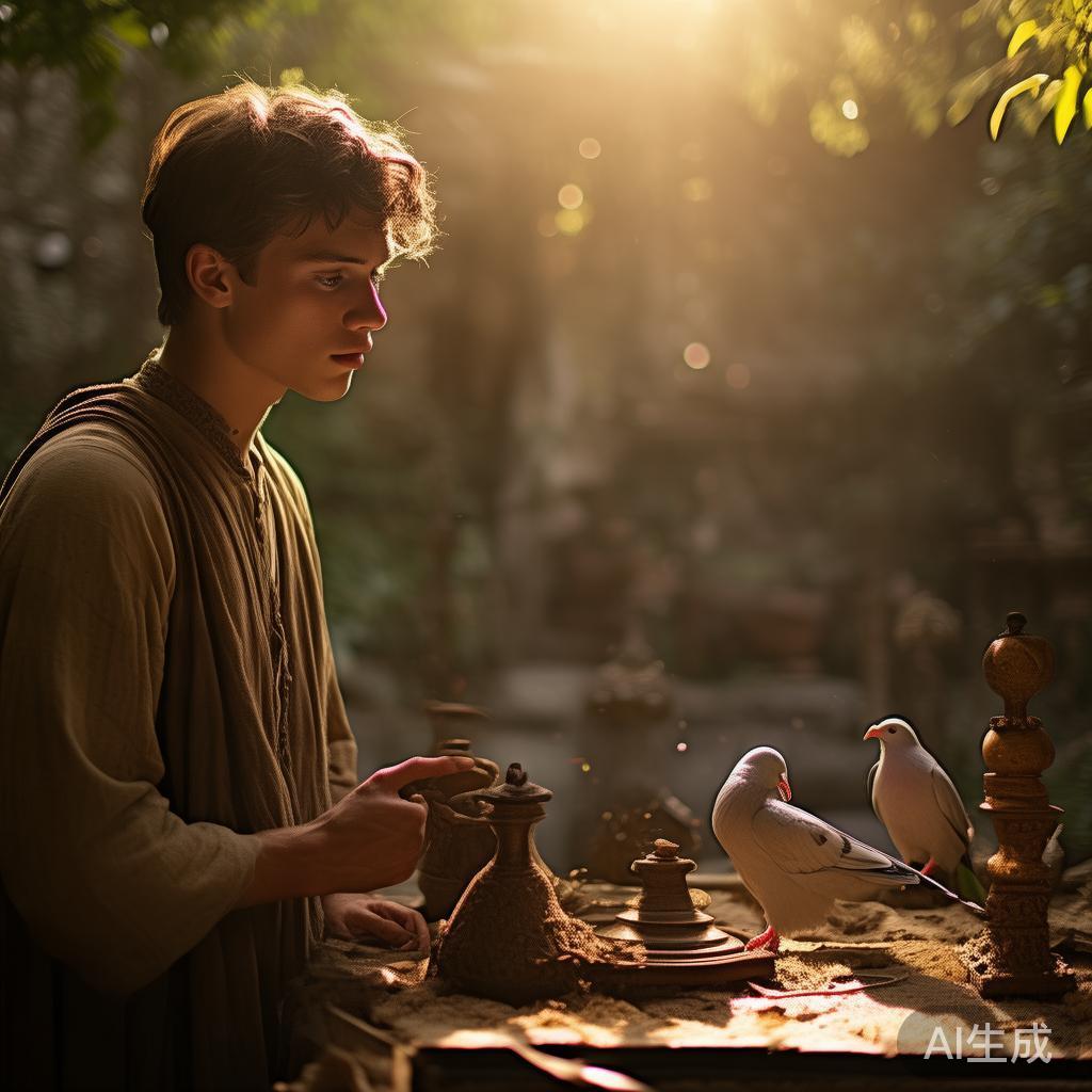 有一回,爸爸跟他说:“你就在角落里呆着,听好啊。你现在已经长大了,是时候学习点技艺养活自己了。看看你哥哥多么勤奋,而你呢,就光重视听那些空话。”