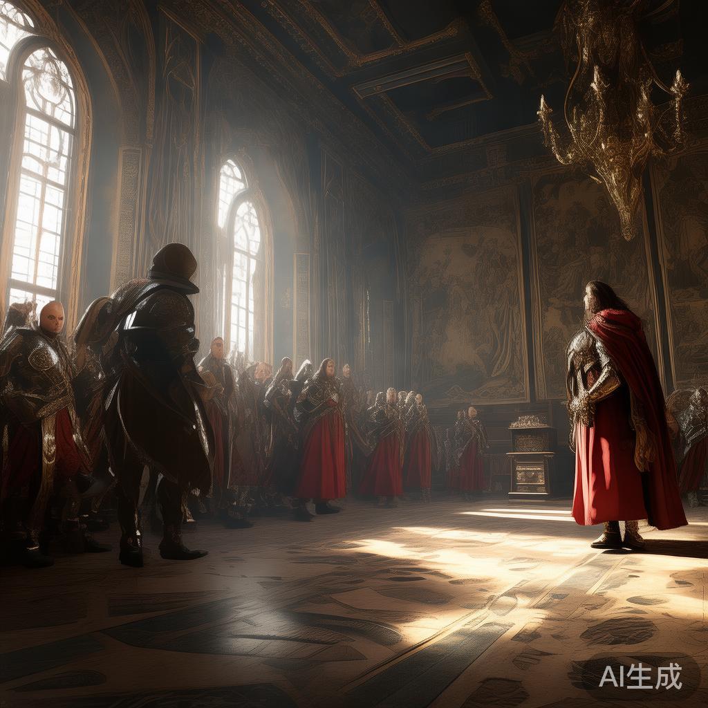 他们互相经过后,共同走进大厅,侍者为他们奉上蜜饯和椒盐核桃。可老国王悲愁满腹,一点食物也吃不下,扑克面孔着陆。