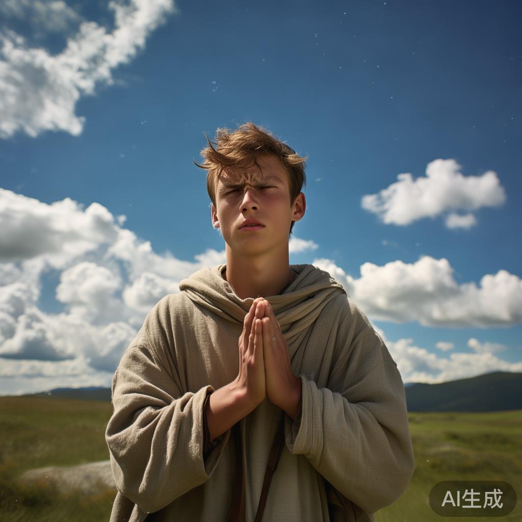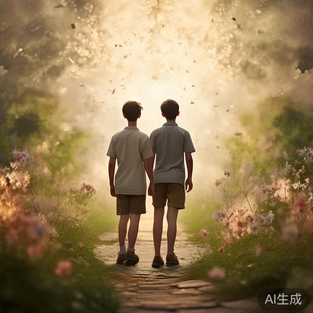 恰在此时,那个穿短袖木鞋的少年从右边逼近,踏上他自己的旅程。两者倍速迎合,如诺言般相拥。他们彼此握住,置于自然的教堂之中,无形的神圣钟声在磅礴苍穹中激荡,欢快的精灵们在周围飞舞,咏唱着幸福的旋律!