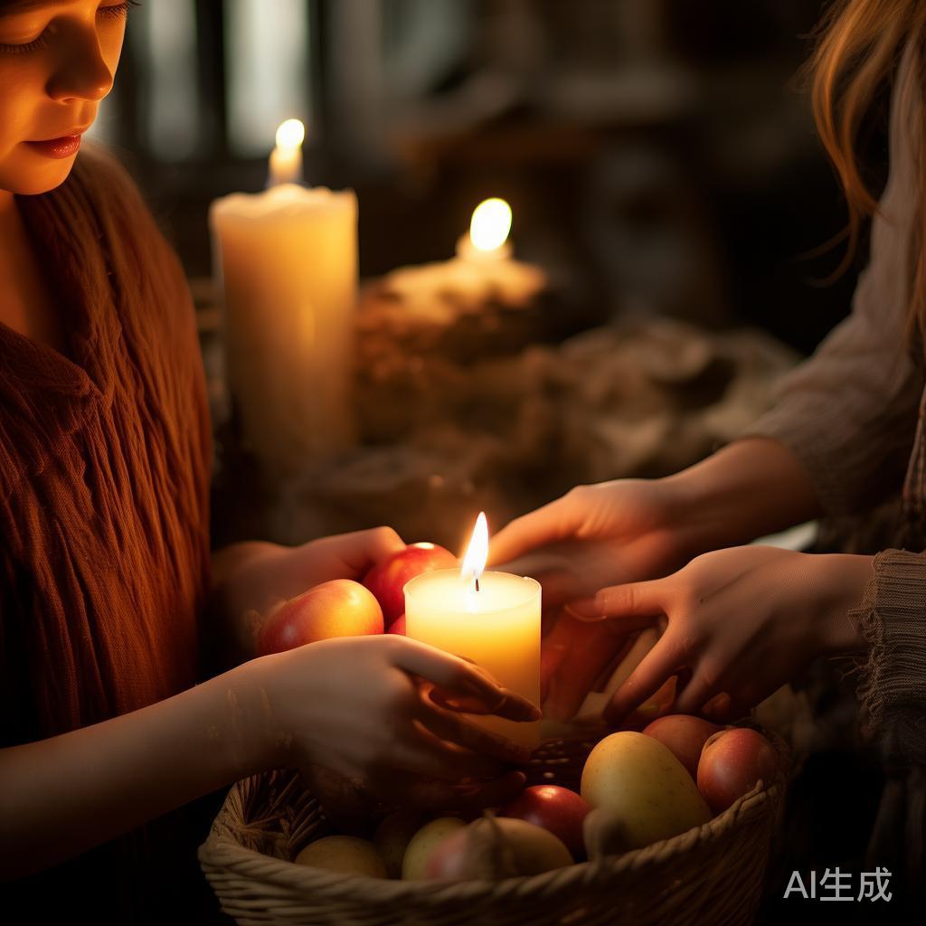 话音刚落,所有的蜡烛们被人提走,牛油蜡烛也不例外。那位太太用她柔嫩的手亲自将它带入厨房。在那里,一个小女孩提着满满一篮子土豆,还有几颗红苹果,这些正是善良的太太送给穷孩子的礼物。